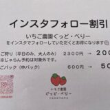 12月~5月頃まで楽しめるいちご狩り。2023年オープンのきれいなハウスで最大8種類のいちごがゆっくり45分食べ放題。さらに練乳やチョコソースをはじめ10種類のトッピングに今ならオープン記念で一粒いちごのお土産の付いたプレミアムないちご狩りです。